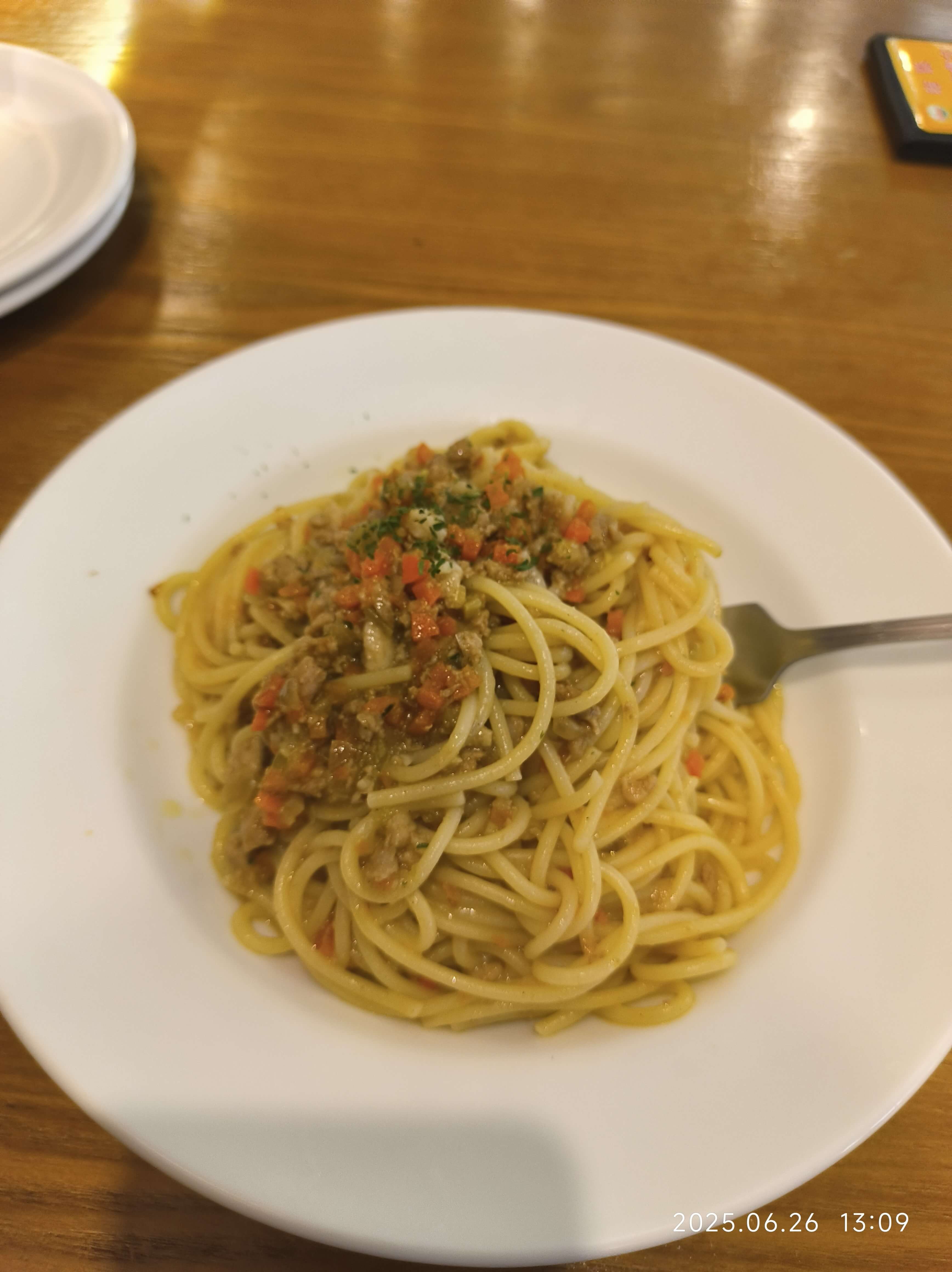 这个叫 博洛尼亚白肉酱面,我主要没看出来博洛尼亚在哪里。