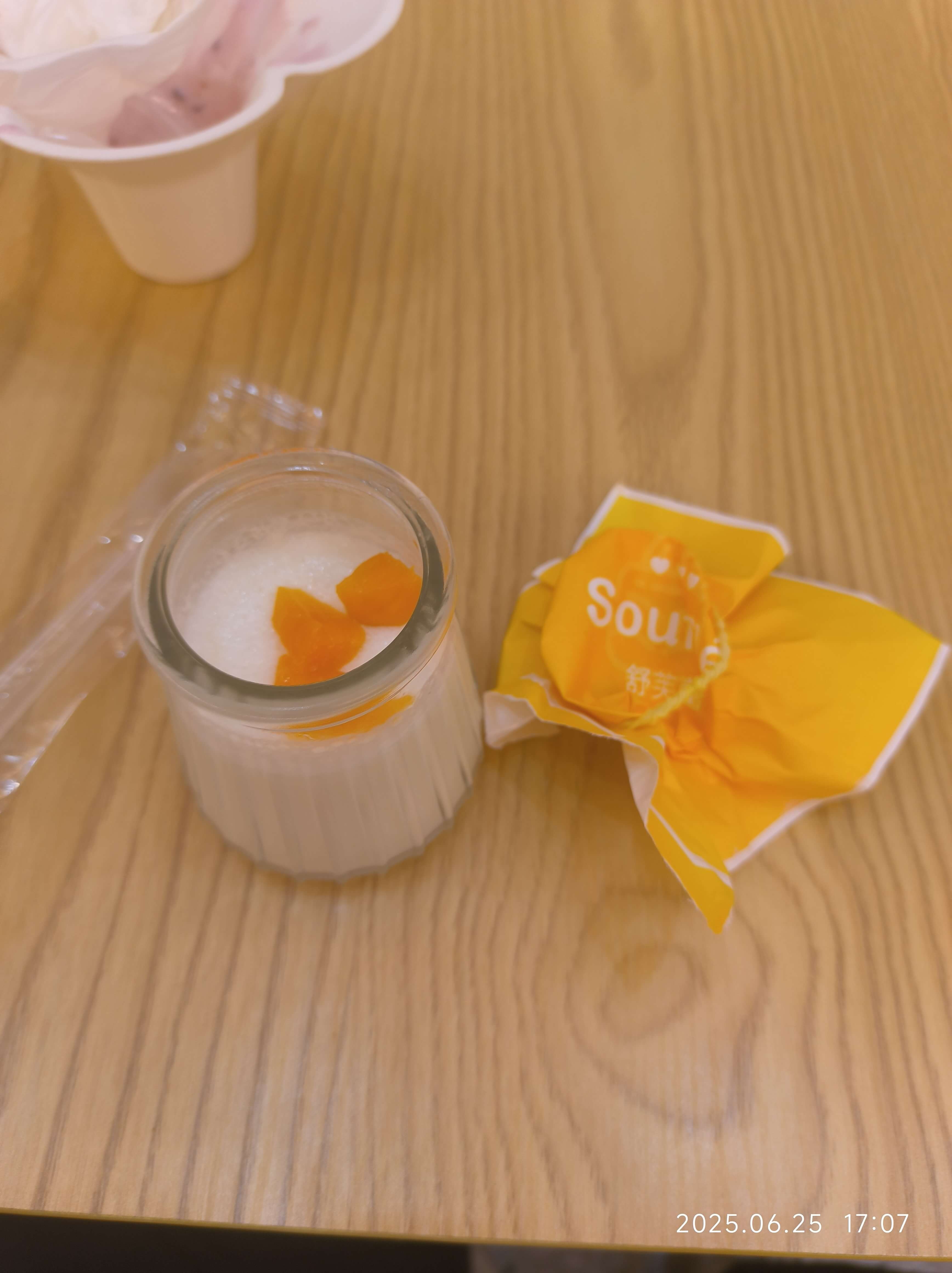 这家店这天在做活动,我也是恰巧路过。然后就是这个是打卡礼,很标准的流水线布丁,奶味啥的就和市面上去买的差不多。不是果冻的口感哦。松软绵密