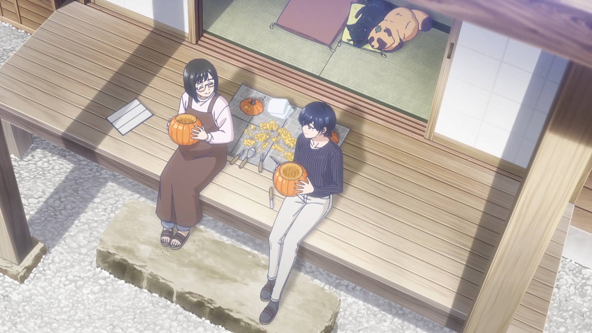 结尾两位做的两个南瓜灯,左边做得很完美的是和子做的,果然说着“随便做做”的人都是大佬。