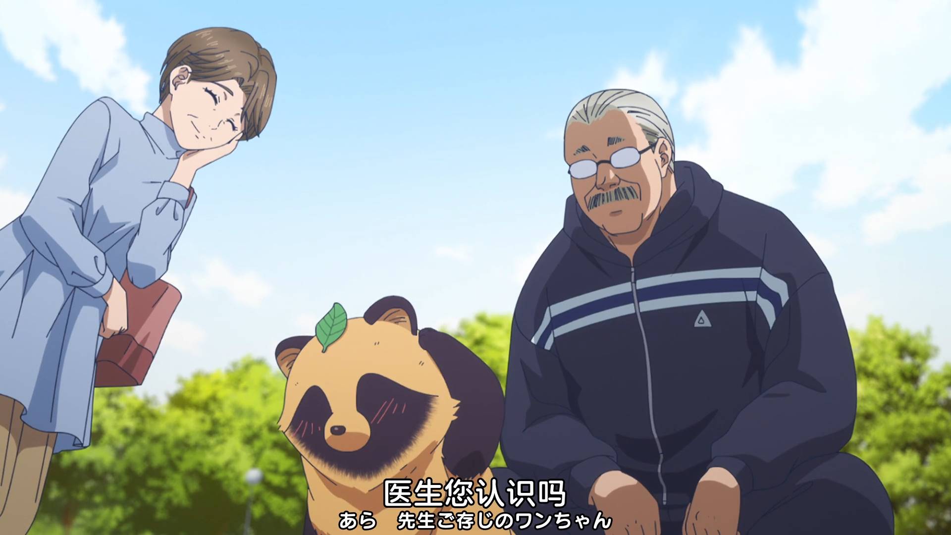 出门到公园散步,还遇到了第一集里宠物医院的医生,这个世界很小。