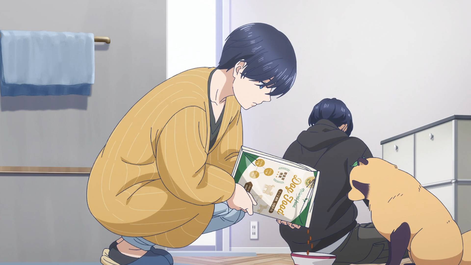 估计没散步多久,回到家以后柜子快组装完了的时候藤也会来了,给狗换上新狗粮。