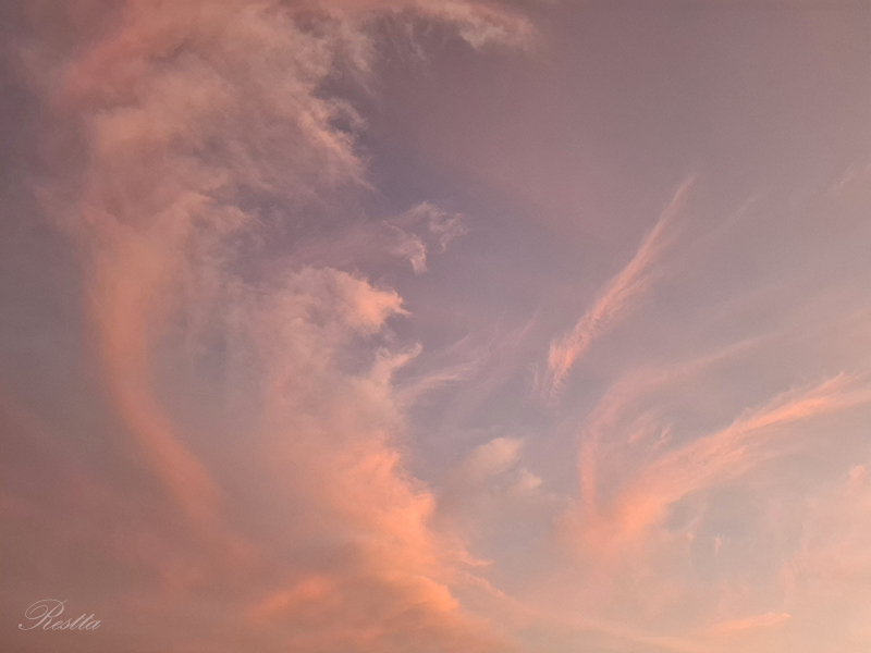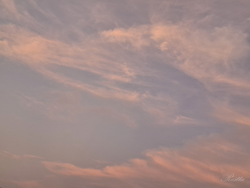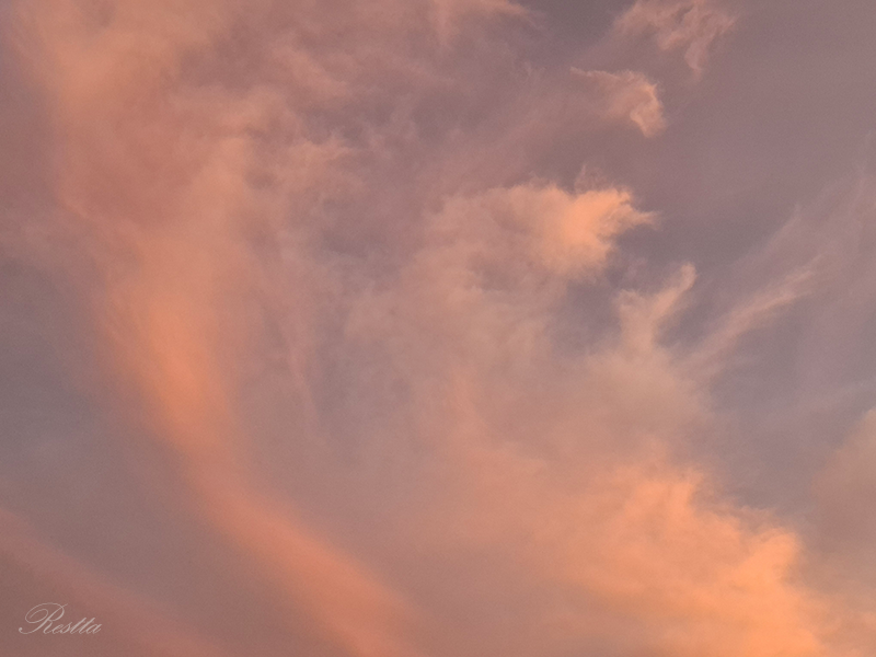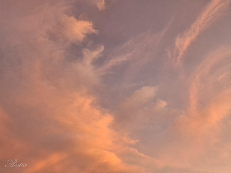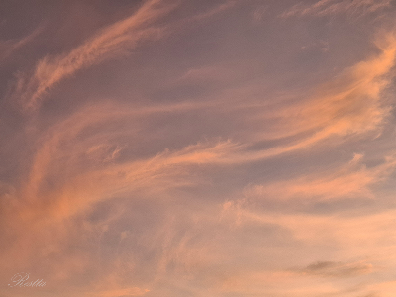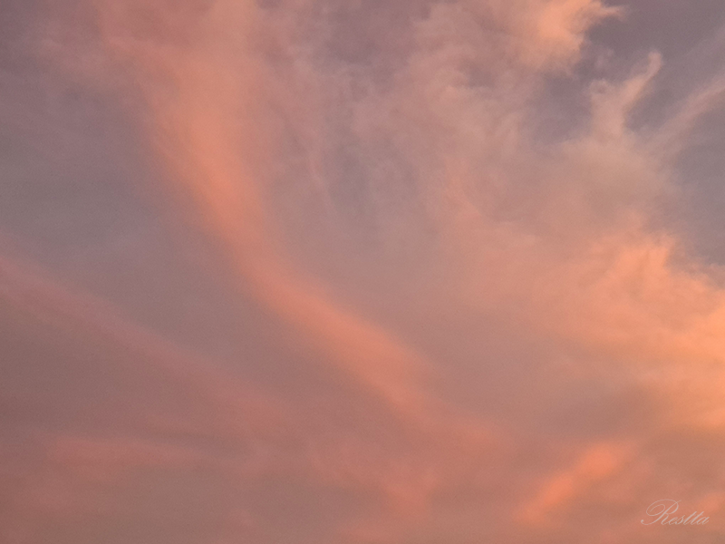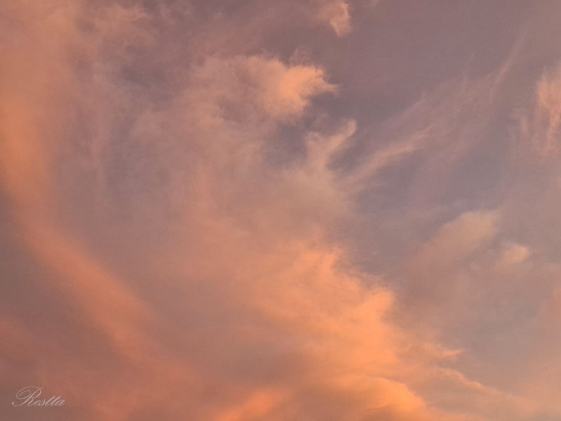 等待半晌,天空開始產生細微的變化,雲層逐步炫染上更深的亮橘,就像是在棉花糖機器中,摻入柑橘香料,一絲絲的抽起飄散,再往中央移動結團,憶起兒時看大人製作棉花糖的過程,彷彿是哈利波特的魔法,令人著迷到不想移開目光,大自然果然就是最偉大的魔法師