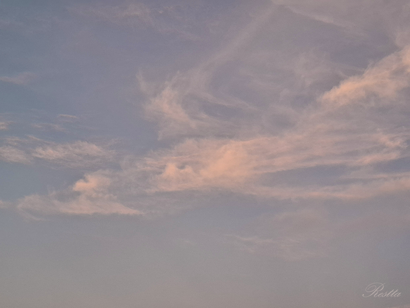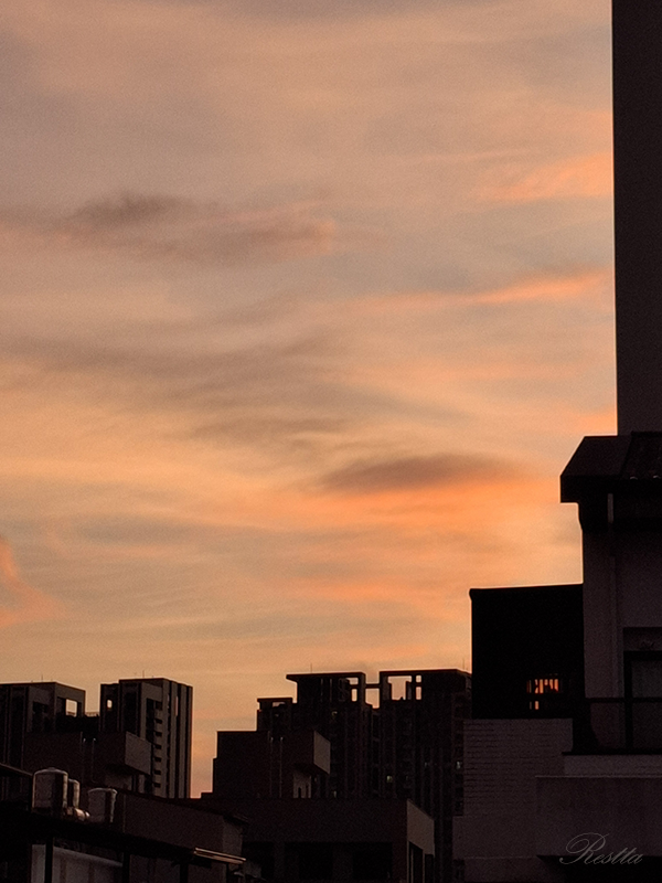 慌忙起身帶著手機往四樓陽台奔去,此時的時間是下午 5 點 40 分左右 ,天色漸暗,原本潔白光亮的雲朵,已開始在邊緣泛起輕橘,四散的雲尚未聚攏,只是如棉絮般自在飄移著