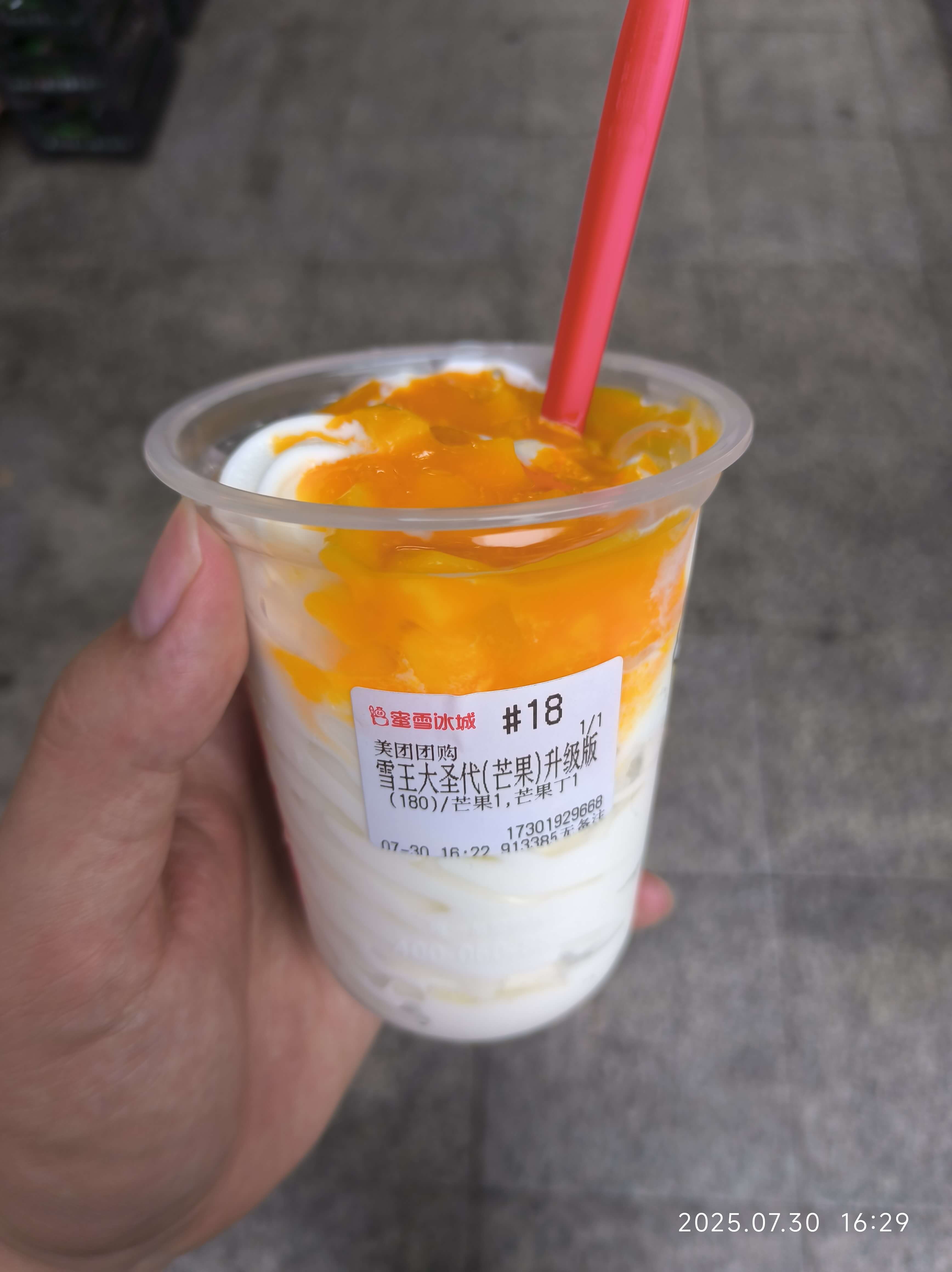 这个是升级版,具体升级在哪里,就是用了杨枝甘露的那个芒果,以前都是果酱,现在有实物水果。味道其实没啥变化。
