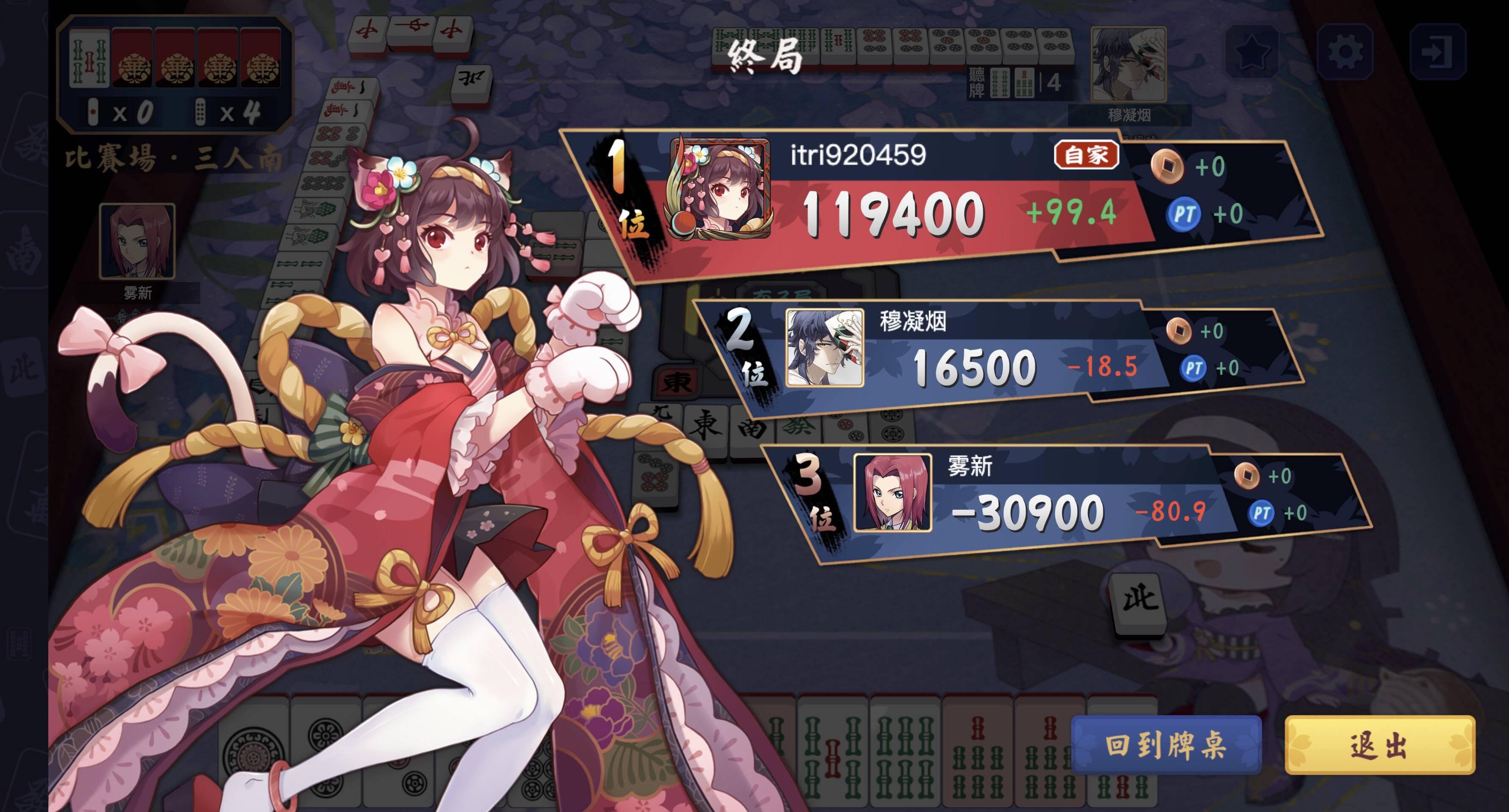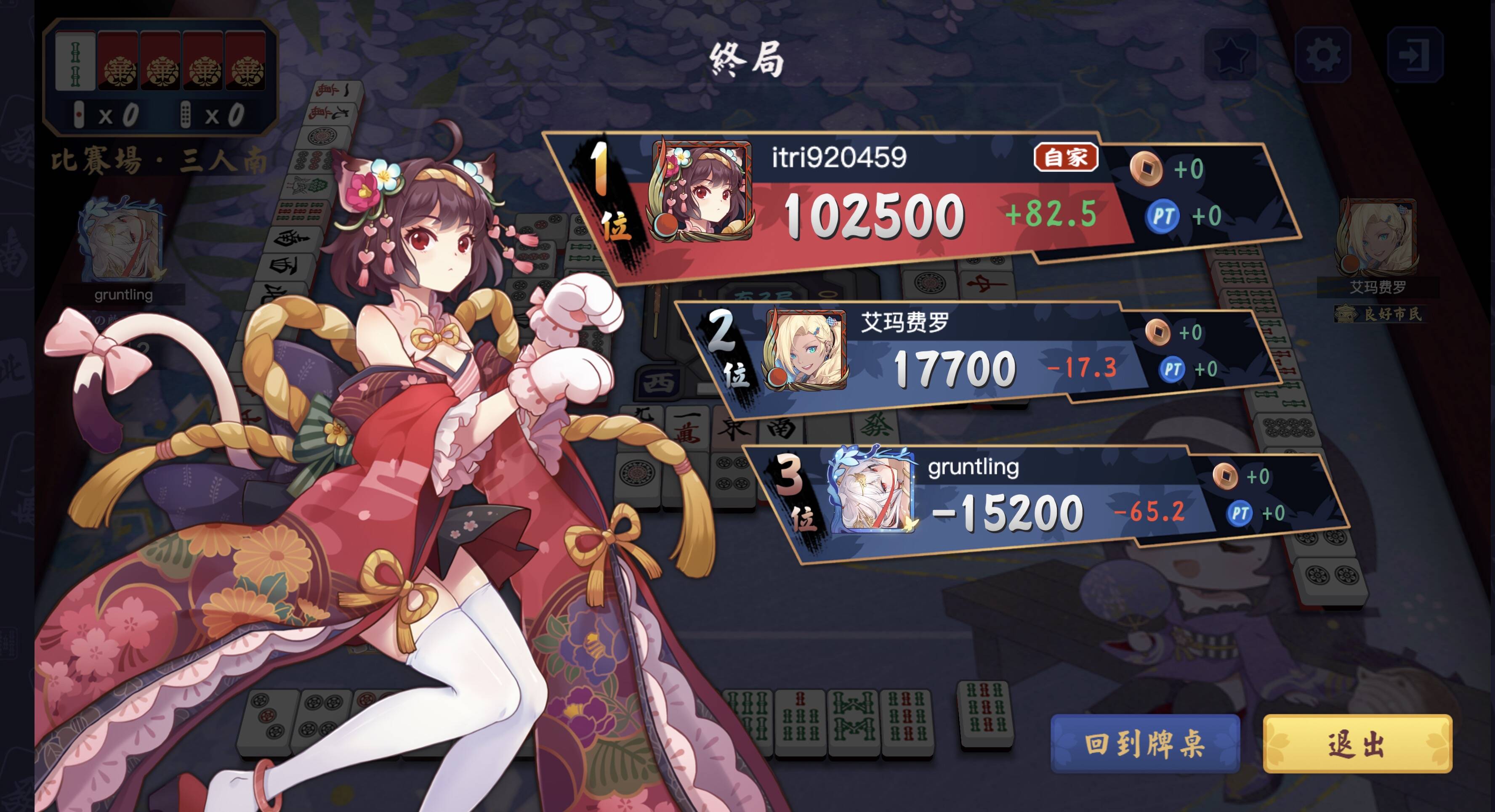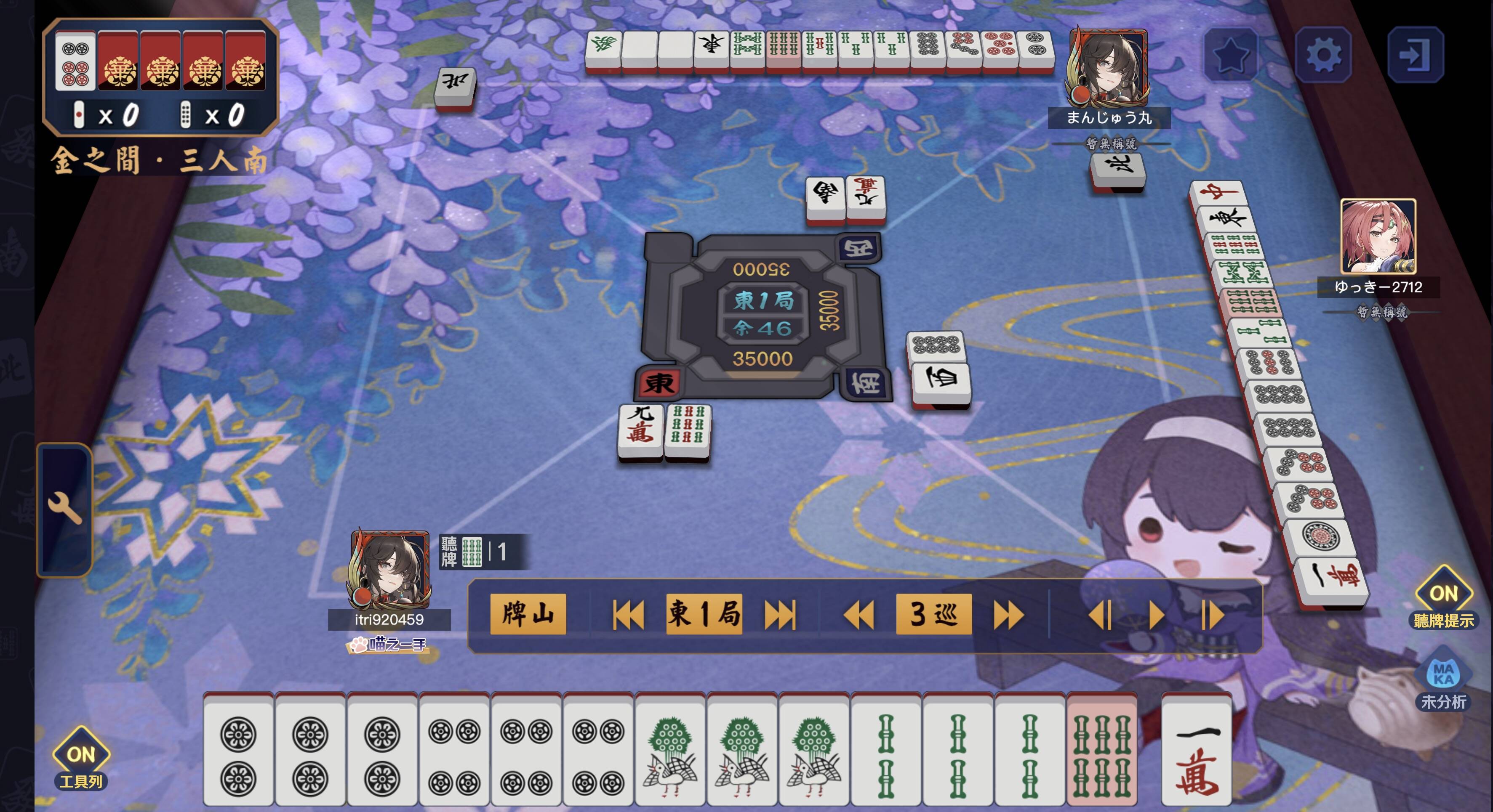 (顺便吐槽一下maka这里选择了胡牌,完全没有考虑到自摸炸庄西入的路线…… 只能说ai在电报、喂牌和见逃方面还有很长一段路要走~