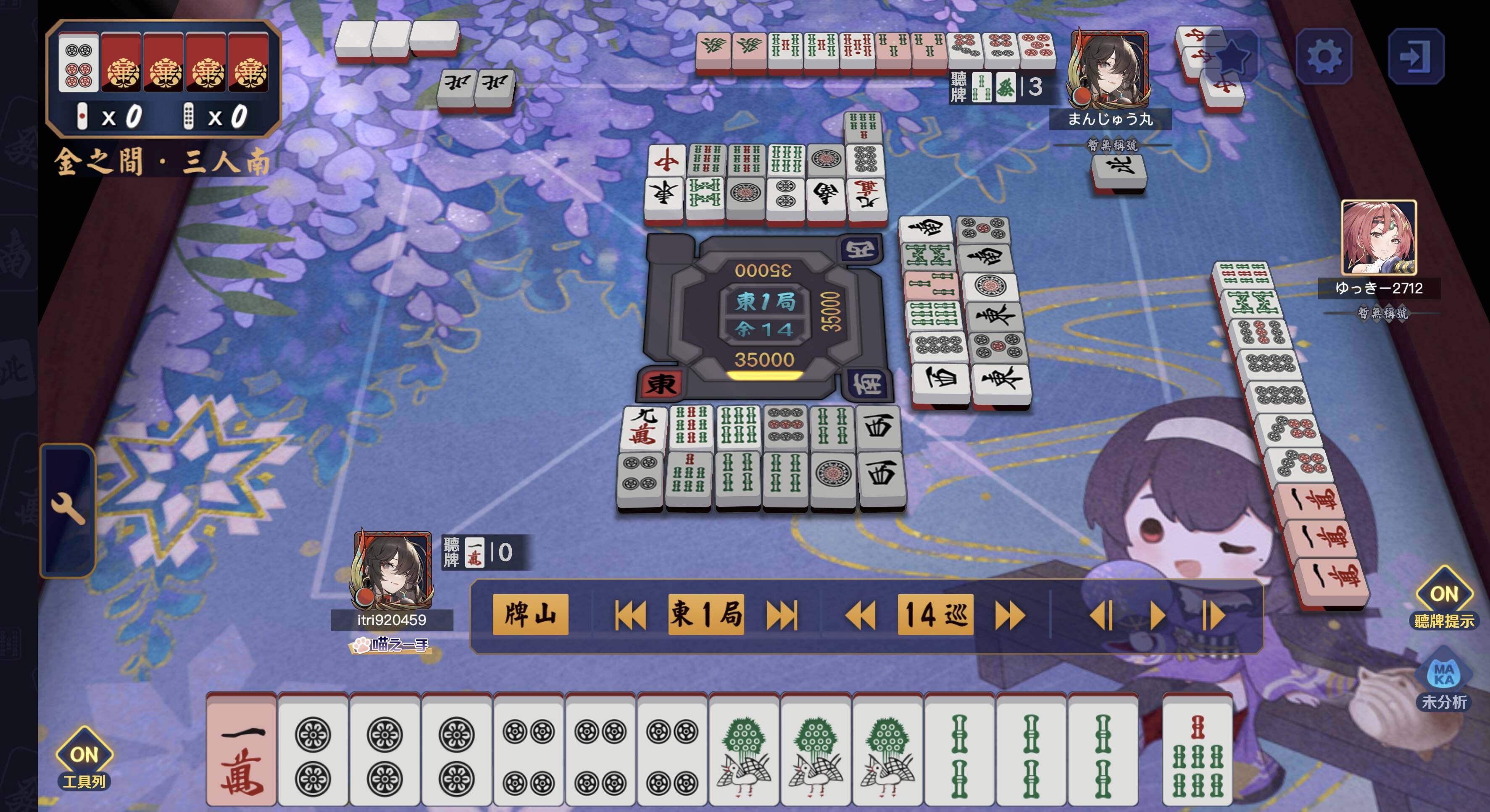 素材来源是刚才打的一把四麻半庄,仔细分析后非常有趣,来分享一下=v=
