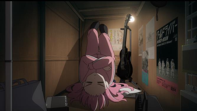 相关剧情:第4集,好不容易凑齐了乐队成员,伊地知虹夏觉得应该有自己的乐队风格,有样学样的打算做乐队周边,比如用束线带缠在手上,山田凉就想到签名卖周边,喜多郁代自告奋勇开设群账号之类的,伊地知虹夏任命她为SNS部长,伊地知虹夏还想到开粉丝俱乐部,山田凉补充年费1W,有握手会和一起开BBQ的活动。轮到后藤一里就啥也想不出来,最后伊地知虹夏却说她只要负责作词就好,而写曲的事由山田凉负责!但是一周时间过去,波奇酱一个字都写不出来,她连自己的签名都设计好了,歌词就是一个字也想不出来,为了逃避现实甚至花了五个小时编辑影片,然后自暴自弃说自己是笨蛋是草履虫!然后为了找灵感翻找自己中学时的作词笔记,结果全是诅咒系。为了写出有青春气息的歌词,想象自己是喜多郁代那样的性格,结果一个人自嗨发癫,父母他们以为她是邪祟附体打算找人除灵!最后一个人躲在壁橱里闭门造车,但是怎么写都不行,连倒立自闭都用上了,还是一无所获!