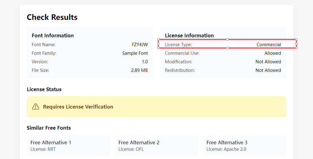 最后上个国外某字体版权查询站的结果,一点都不准确的好吧x