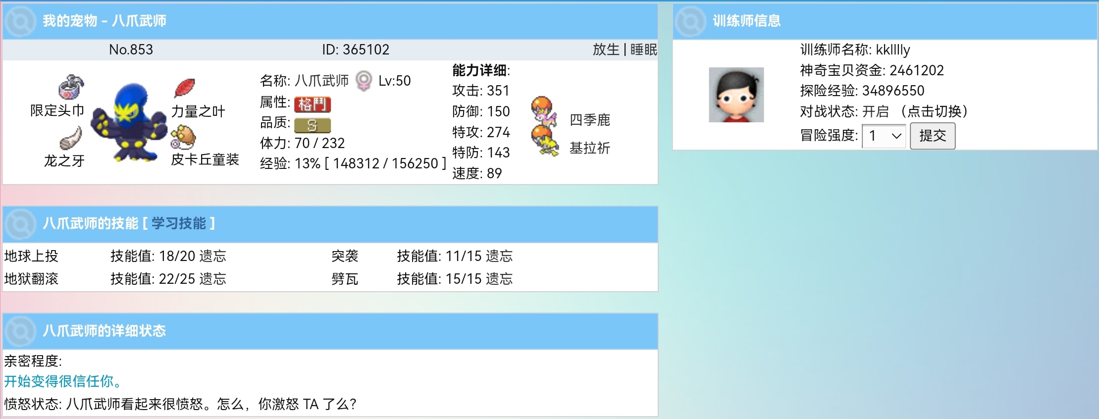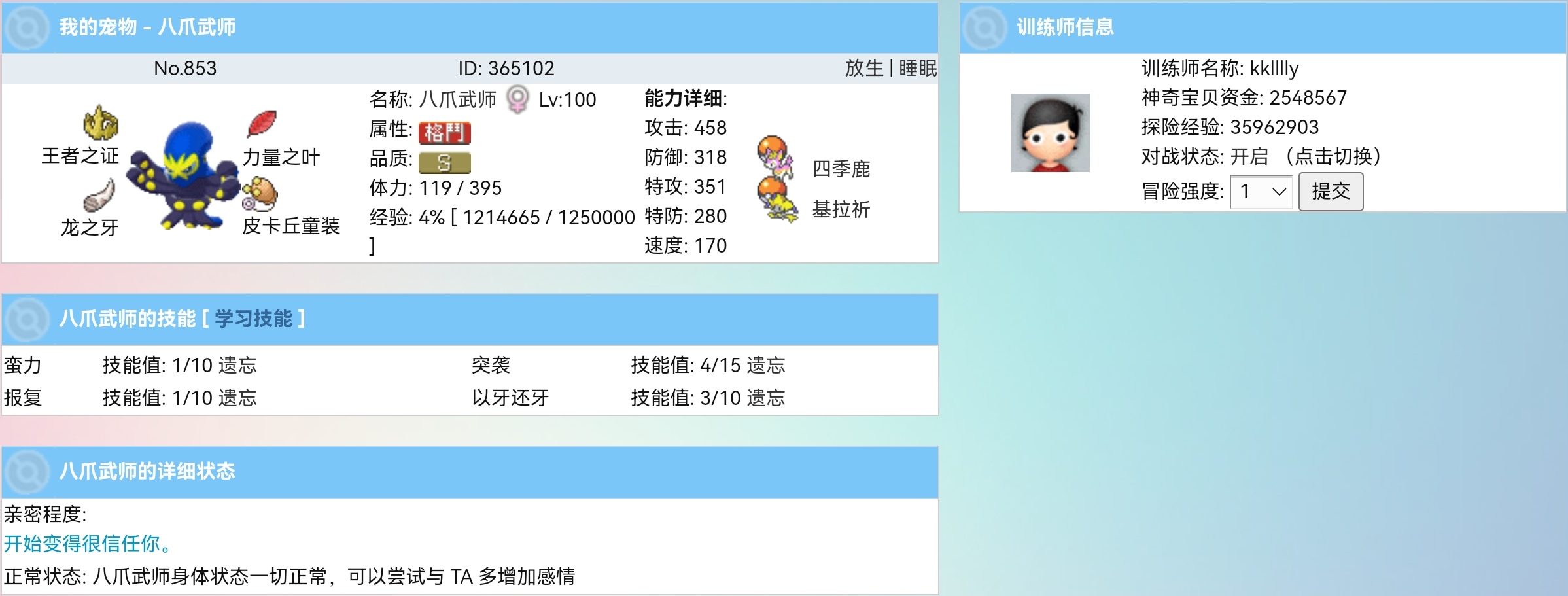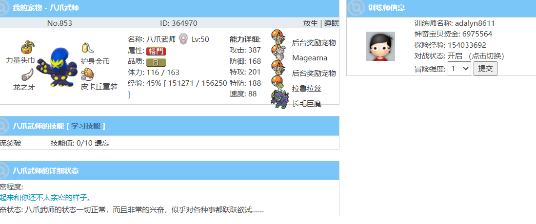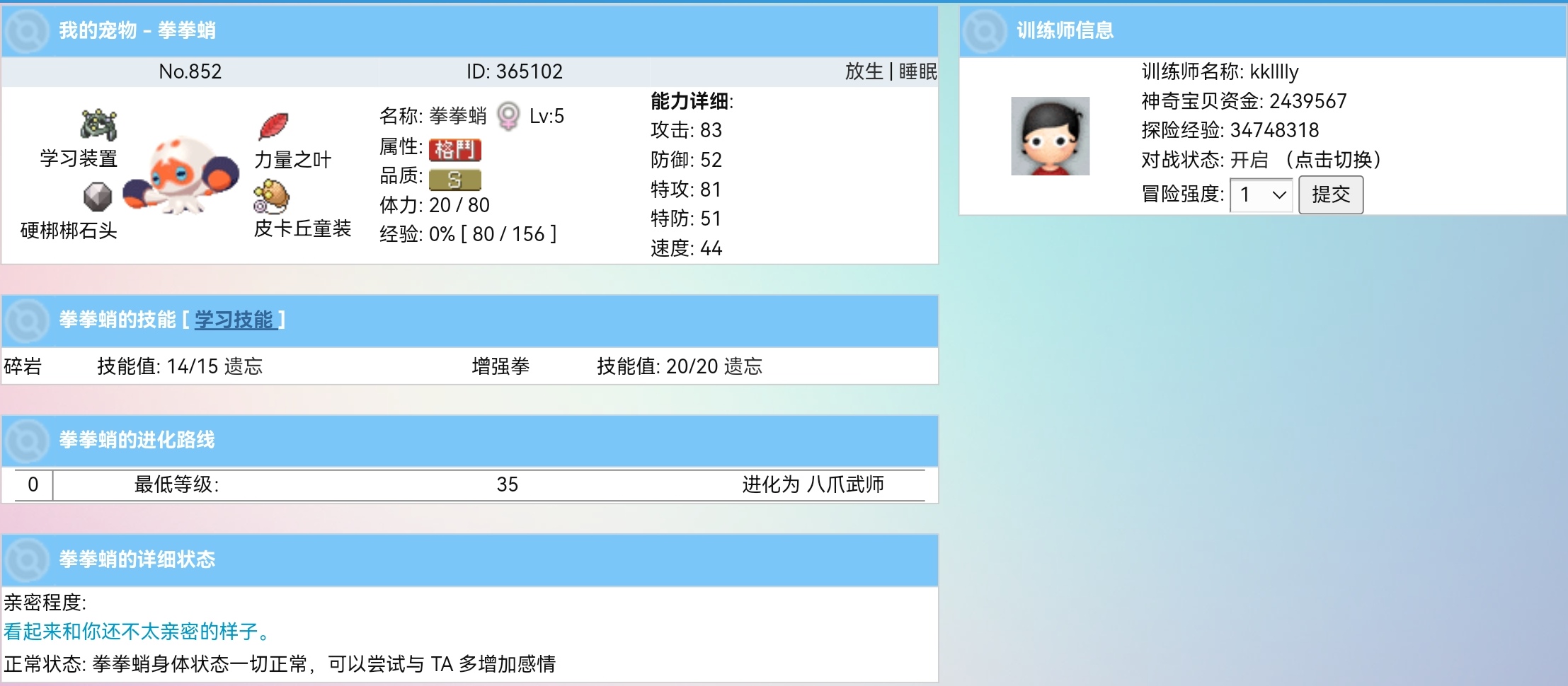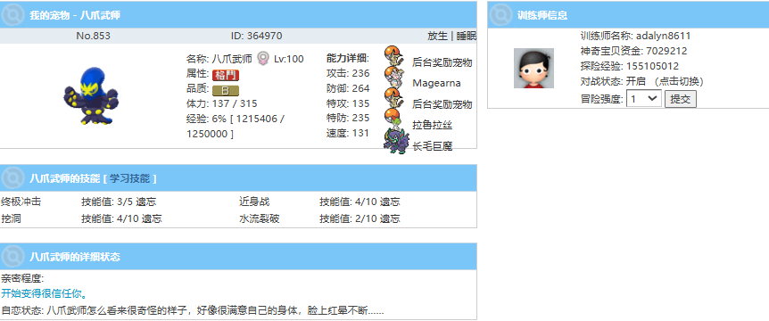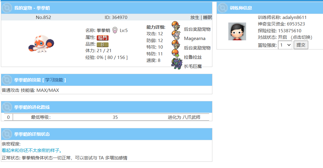 4.被选中宠物的那位训练家可以获得50-100tsb
