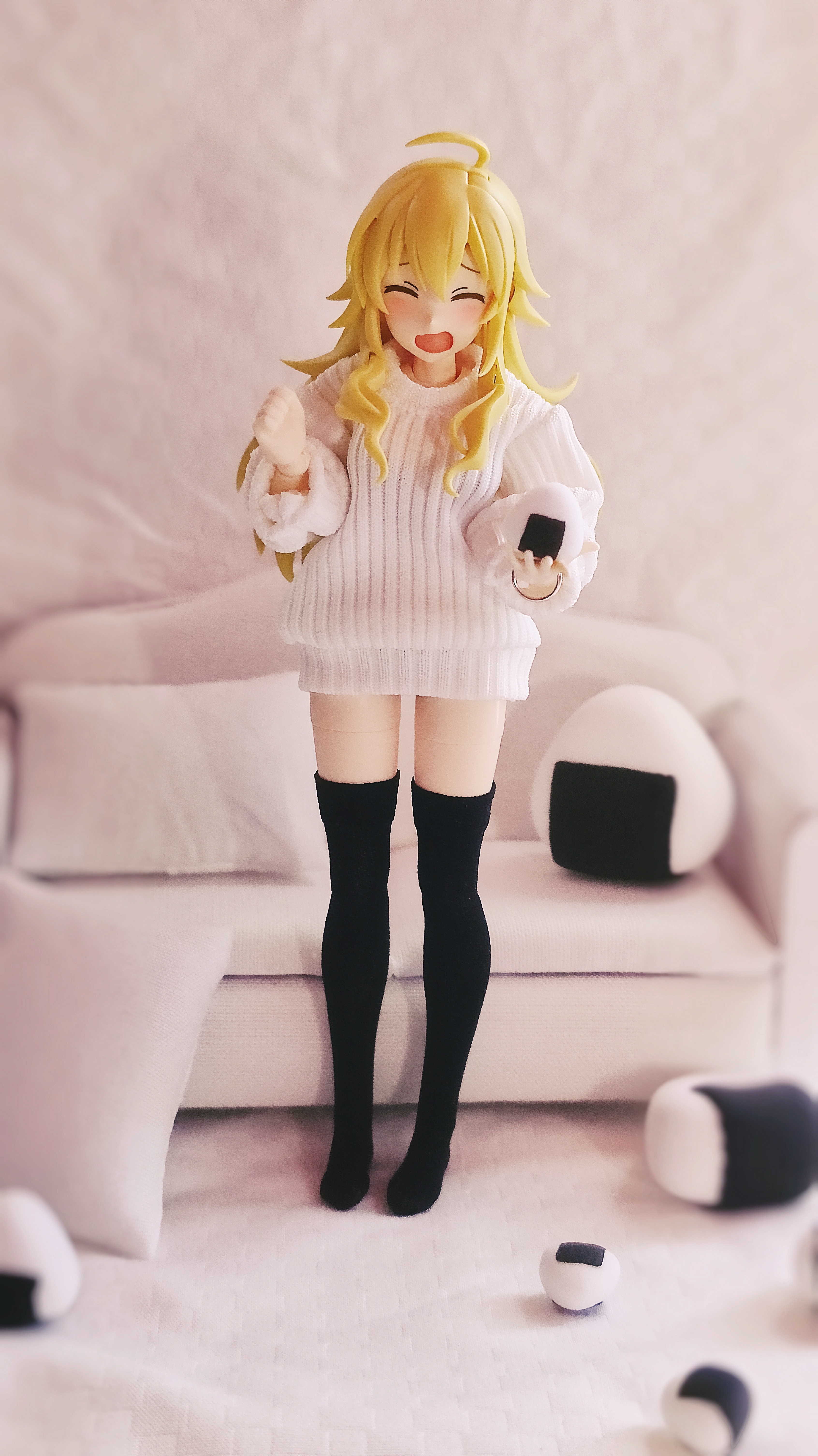 (甚至感觉能幻听到“これはミキのおにぎりなの!”)心里涌起一股成就感。手工的乐趣大概就在于此吧,从无到有地创造出一个小小的世界,哪怕做得不那么完美,但制作时的专注和心意,以及最终呈现出的独属于自己的场景和故事,就是最好的回报。