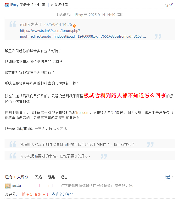 我在昨天水坛子的时候看到Ta的帖子都是比较开心的样子,我也就放心了。