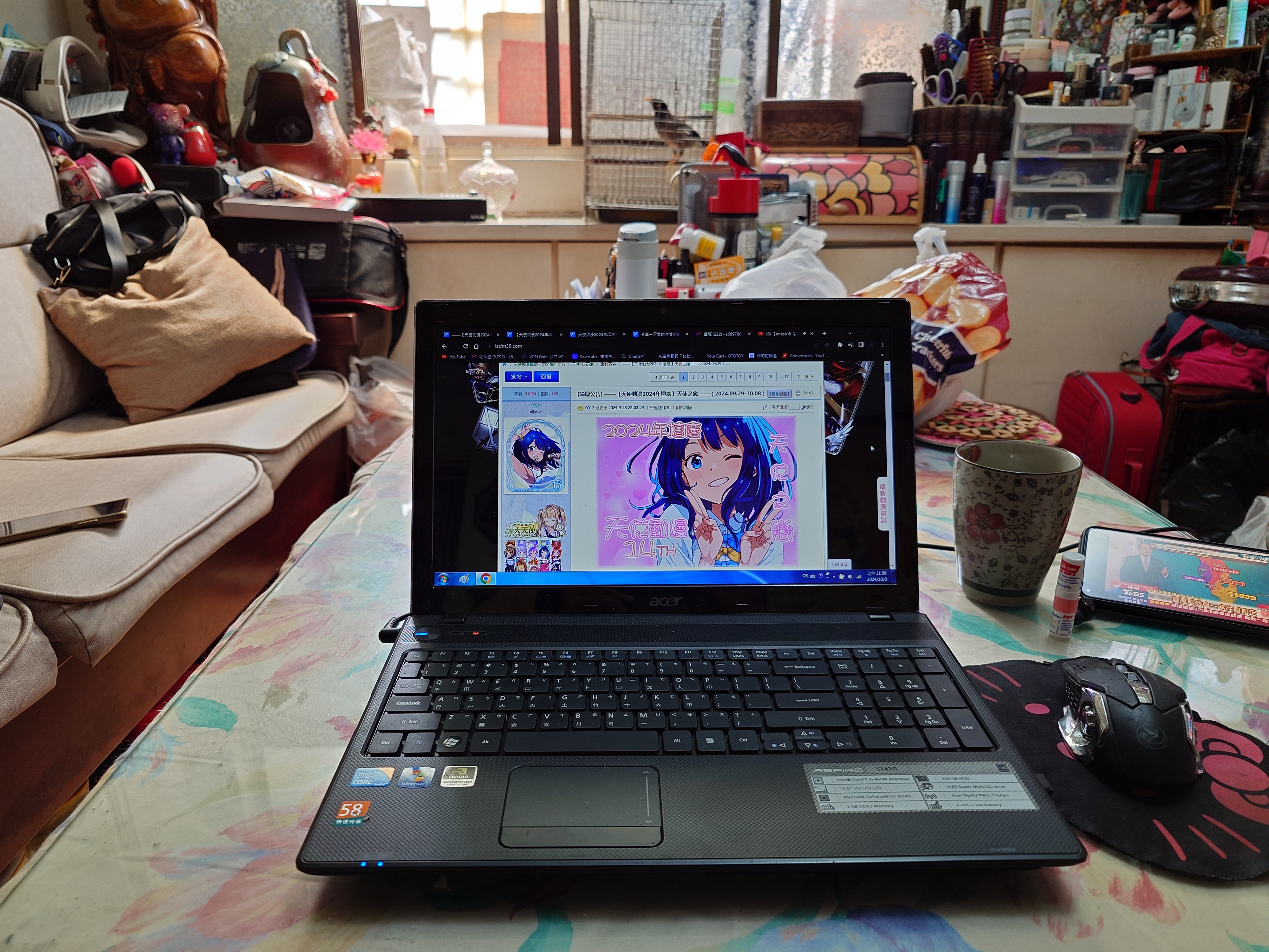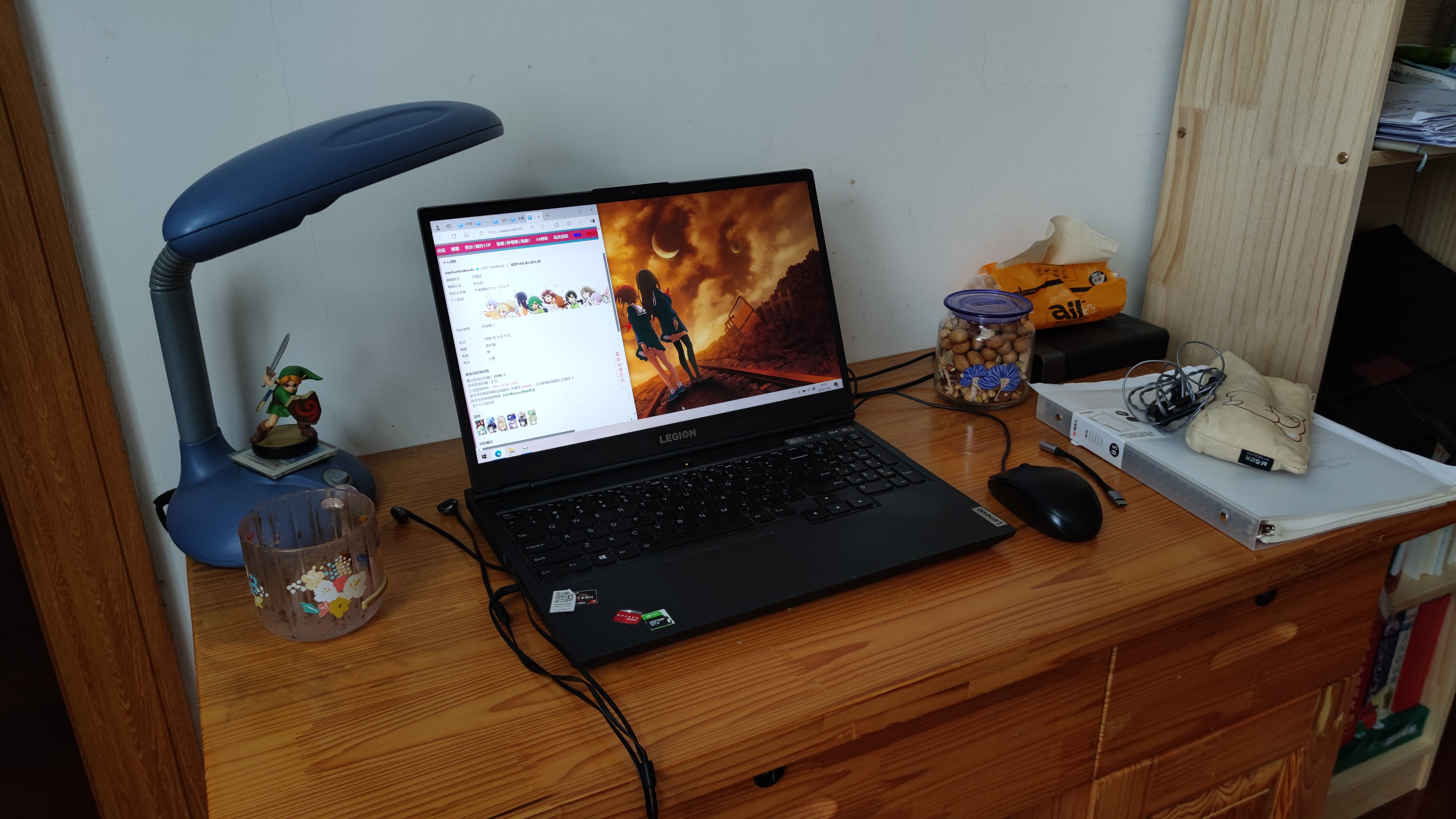 极其简单的桌面。注册论坛第16天,有一些零食散落在桌面,右边是把吉他和电子琴,没有动漫周边,左边的头戴式耳机只有在听音乐时会拿来用(很热,多数用的是入耳式耳机。电脑开着护眼模式所以橙黄色的,推荐大家也开。然后长期坐着不好,所以我有个枕头是拿来跪着的,在旁边没拍到。
