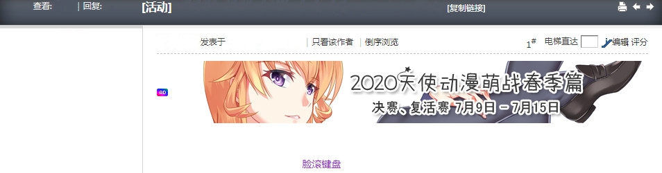 回帖格式:1. 动漫角色名 答: 2. 倒数第五个x对应的字 答: 3. 4楼提到的一首曲子 答: 4. 被遮挡的字 答: 5. 序列号为16的动漫 答: 6. 7月几日的签到记录贴 答: 7. 几月几日的签到记录贴 答: 8. 楼主的技能 答: 9. 什么生物 答: 10. 颜文字 答:复制代码