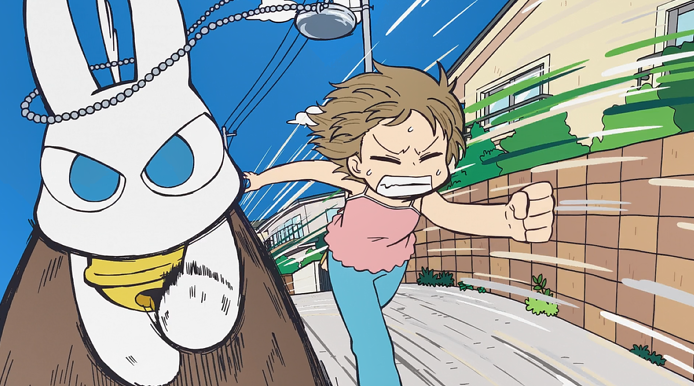 在这一话中,新仓、南云和泉三人追赶那个挂有藏着新仓黑历史的项链的长耳猫……