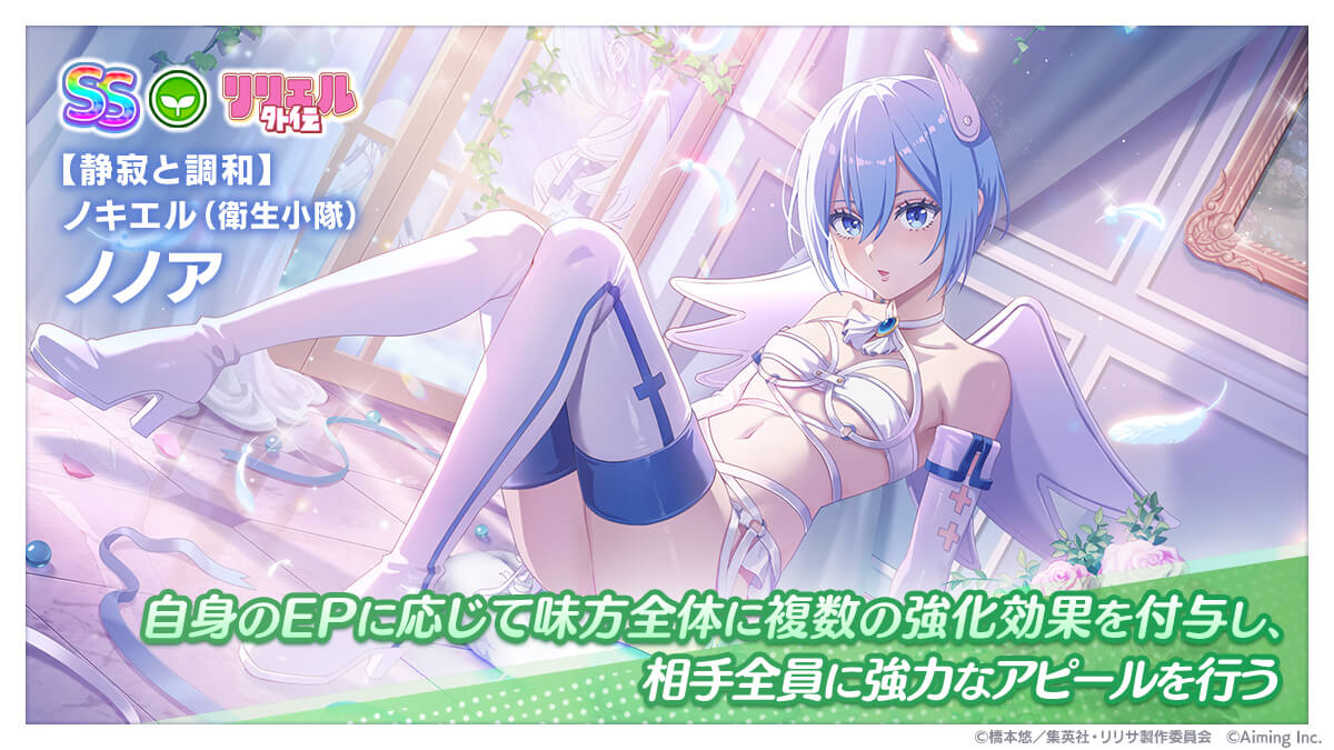 由 Aiming(艾鸣)开发制作的电视动画电视动画《2.5次元的诱惑》延伸智能手机游戏《2.5 次元的诱惑 天使们的舞台》,官方在今(1)日推出理理庆典转蛋【寂静与调和】诺基艾露(卫生小队)诺诺亚。